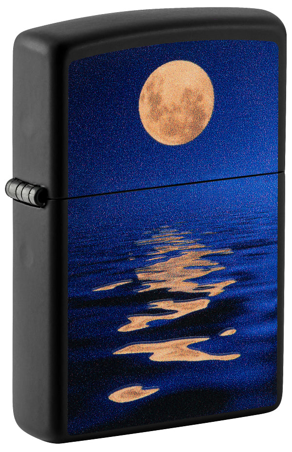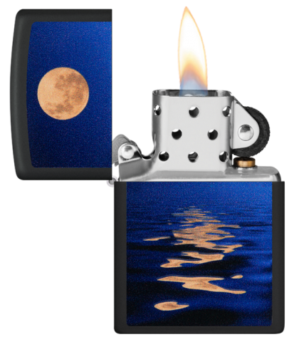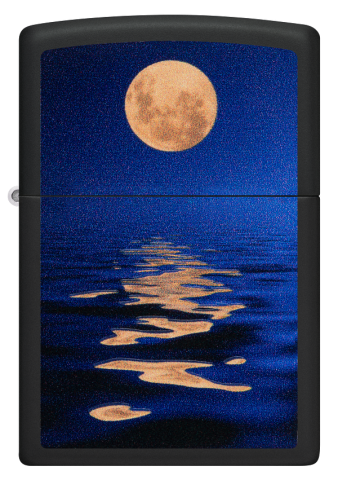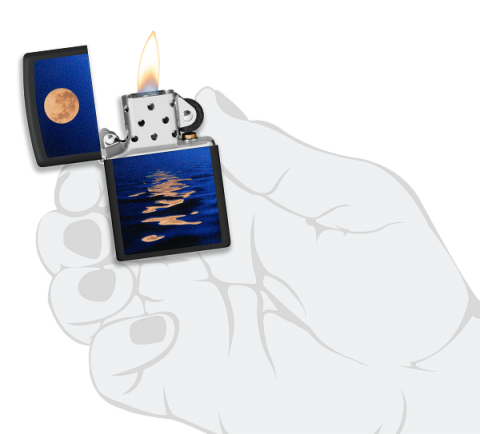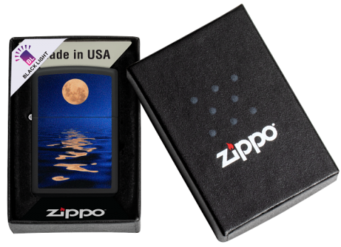 The serene moonlit waters design on this Black Matte lighter is beautiful on its own, but it shines even brighter when exposed to ultraviolet light. Our Color Image process is enhanced with our specialty blacklight finish to create a truly stunning piece. Comes packaged in a gift box. For optimal performance, fill with Zippo lighter fuel.